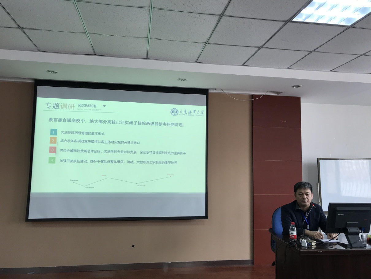 刘正江从目标管理实施背景、目标管理实施方案、配套政策与措施三大方面为大家进行了详细解读,并对学院教师提出三点工作希望,第一要有思想共识;第二要有制度共识;第三要有行动共识。他希望学院教师支持学校、学院开展工作,精诚团结为学校的发展做出贡献。