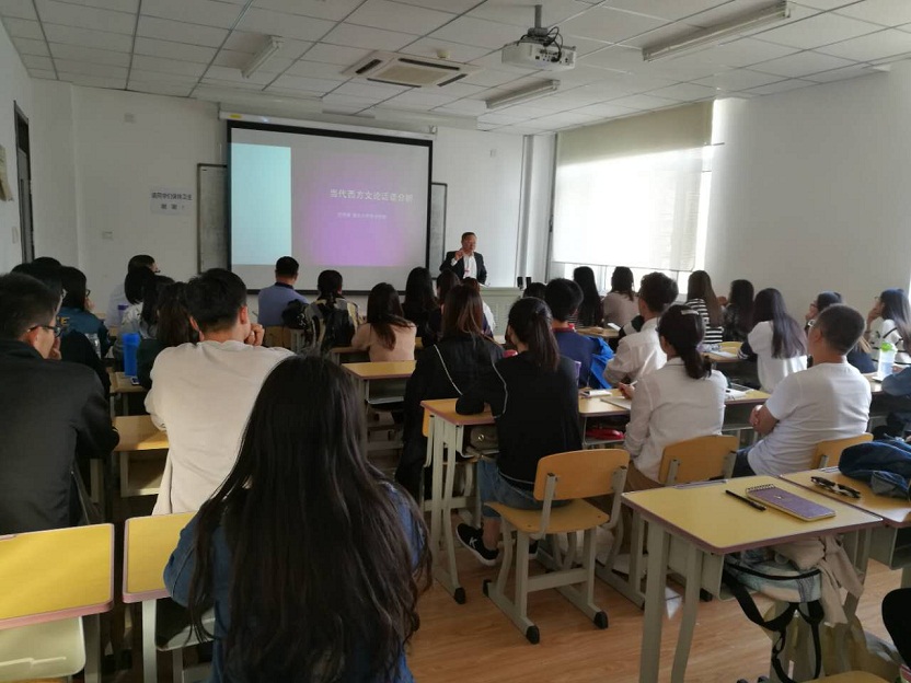 9月29日,我校客座教授复旦大学博士生导师汪洪章为外国语学院师生带来一场题为“当代西方文论话语分析”的精彩讲座。