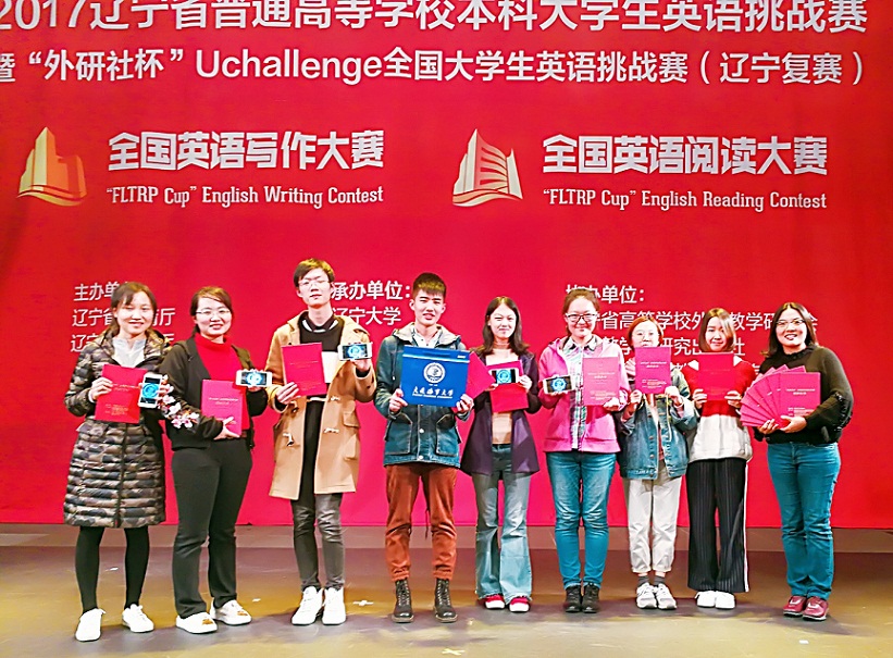 10月28日,外国语学院的8名英语专业学生在吕雯钰老师的带领下参加了“2017年辽宁省普通高等学校本科大学生英语挑战赛”暨“外研社杯”UChallenge全国大学生英语挑战赛(辽宁复赛)的英语写作大赛和英语阅读大赛。本次大赛共有辽宁省47所高校近300名选手参加。通过激烈角逐, 我院所有参赛学生均取得优异成绩。在写作比赛中, 黄琎、张华予、曾诗吟同学获得一等奖(三人位列前9名),方京英同学获得二等奖。在阅读比赛中,孙若滔同学获得一等奖,杨晓璇、崔琦、冉瑞同学获得二等奖。 本次8名同学的出色表现展示了大连海事大学外国语学院在专业教学中的优秀成果。