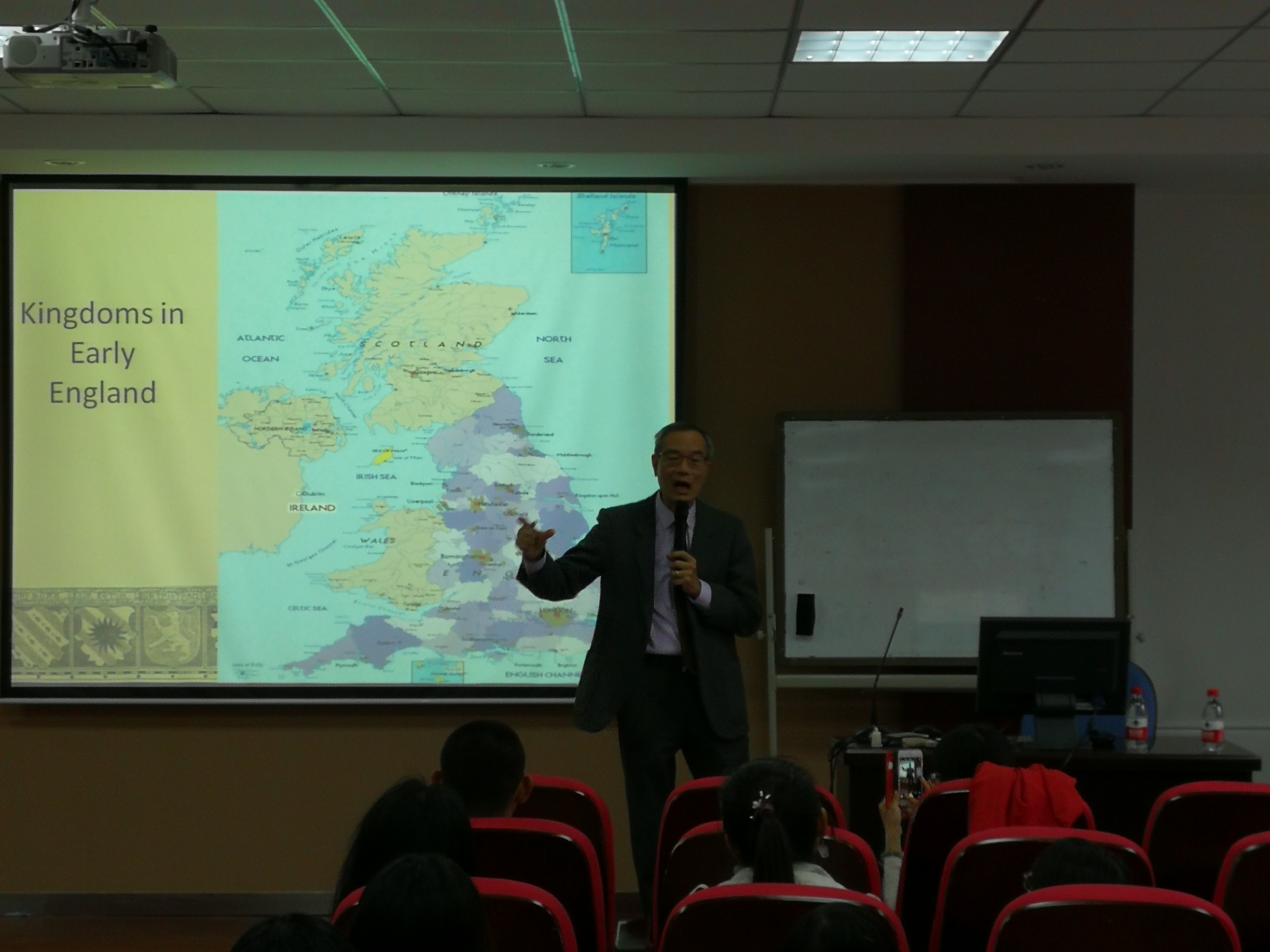 苏其康教授的讲座围绕“亚瑟王传奇”这一传说展开,讲述了亚瑟王的一生,他的骑士们的奇遇,以及他的骑士兰斯洛特和亚瑟的王后桂妮维亚的爱恨情仇。苏教授列举了“亚瑟王传奇”的多个译本,说明了它在世界的影响之深。讲述过程中穿插苏教授本人的实地考察经历,教育大家对学问要有敬畏之心,在实践中求真知。