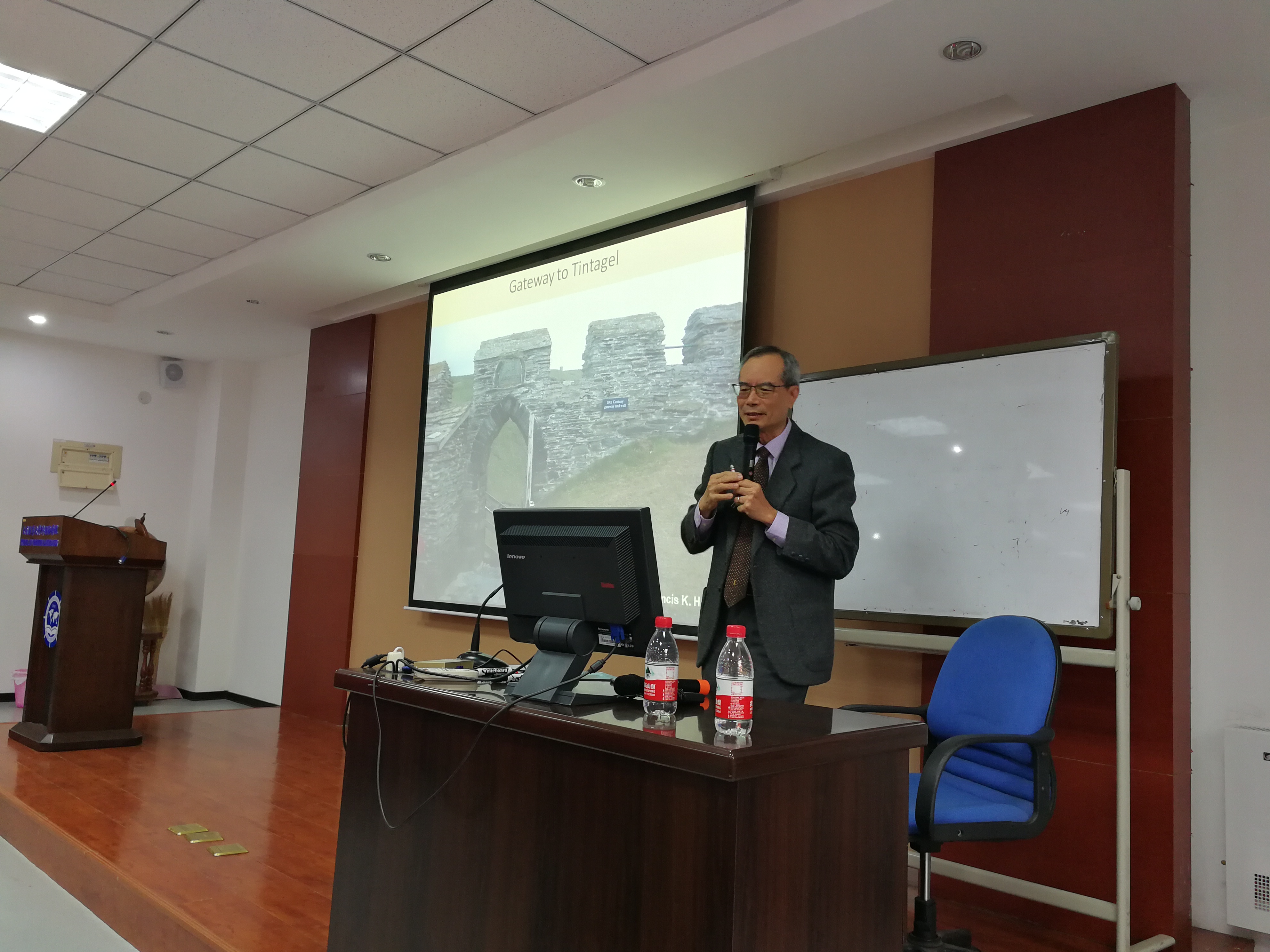 应外国语学院邀请,台湾高雄医科大学语言与文化中心苏其康教授于2018年10月12日16点30分在外语楼105报告厅做了“亚洲共同体与人类文明之路”大型系列讲座第五讲,即“超越民族、语言、文化的亚瑟王传奇”的讲座。本讲座由李延坤教授主持,学院教师及英语系、日语系本硕学生聆听了此次讲座。