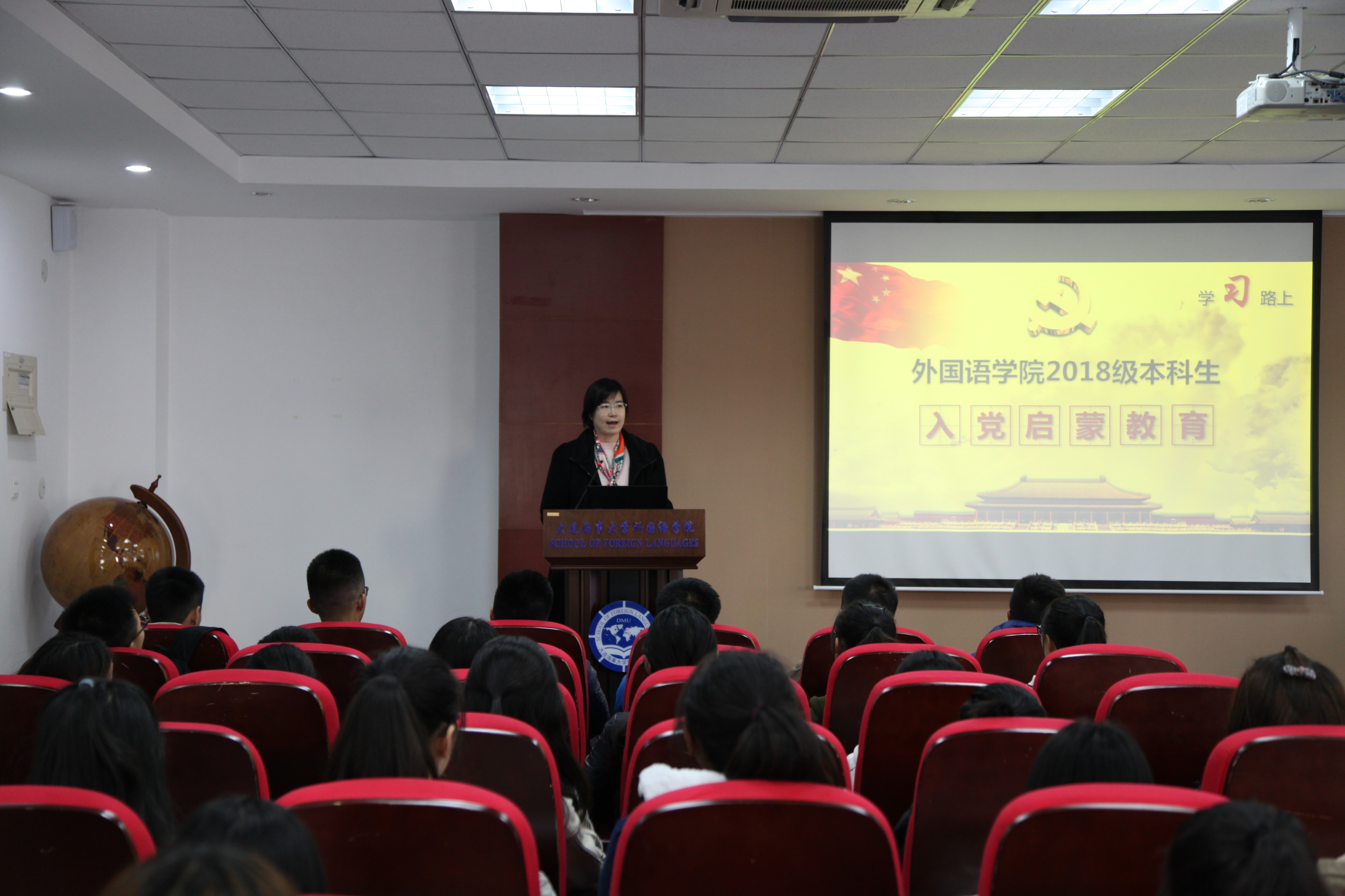 入党对大一新生来说是一个庄严的话题,为让新生正确看待入党问题,端正入党动机,了解入党流程,10月31日中午,外国语学院党委副书记、副院长、纪委书记吕海宁为2018级新生做入党启蒙教育专题讲座。