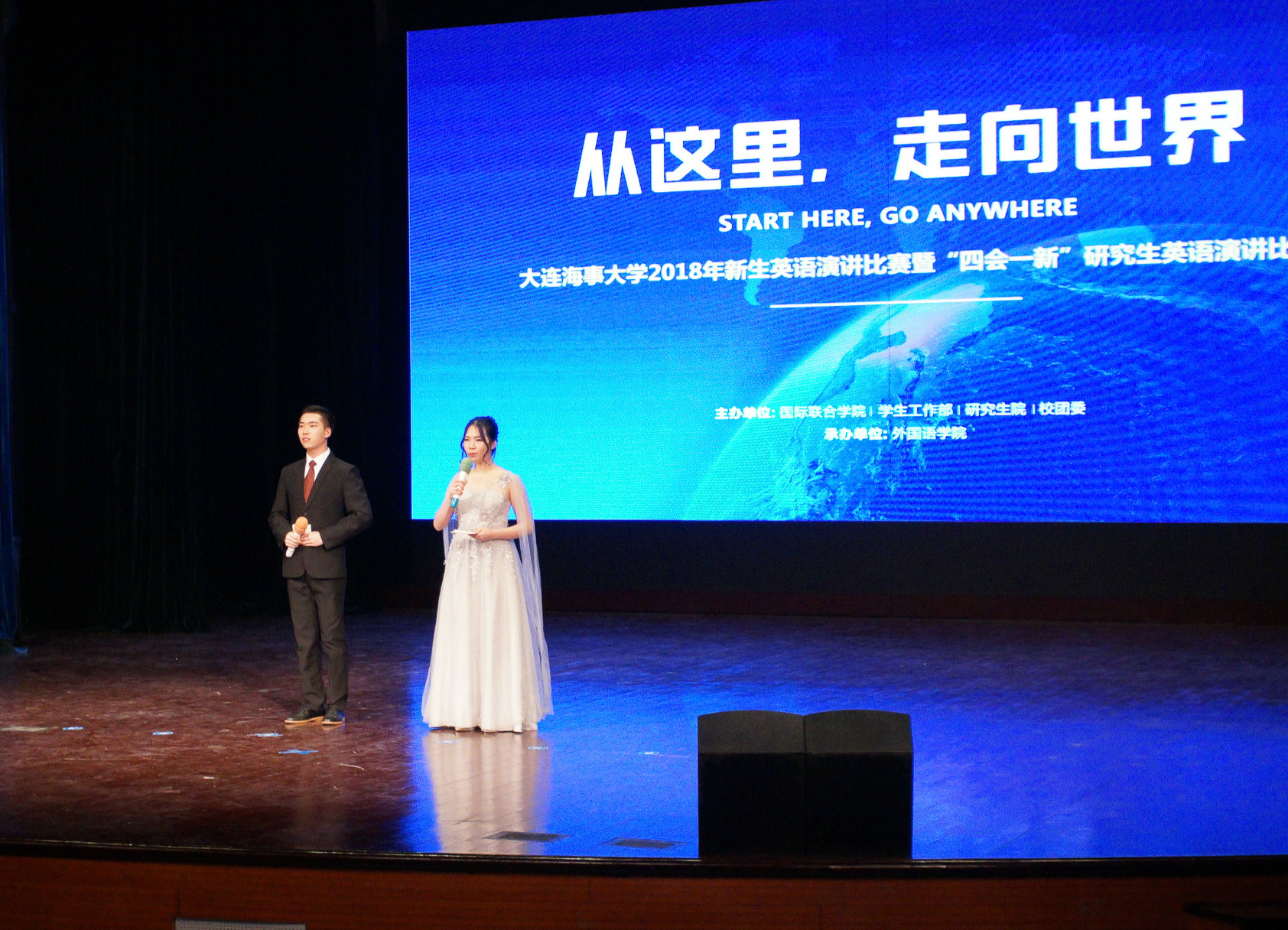 10月30日,由国际联合学院、学生工作部、研究生院、校团委联合主办,外国语学院承办的“从这里,走向世界”大连海事大学2018年新生英语演讲比赛暨“四会一新”研究生英语演讲比赛在大学生活动中心正式落下帷幕。比赛邀请外国语学院副院长曾罡等5位担任评委,国际合作与交流处处长付先平、国际联合学院副院长张金蕾、学生工作部副部长徐德江、校团委副书记于丽莎、研究生院研究生工作办公室主任刘文永,以及各学院主管学生工作的领导出席比赛现场。每名参赛选手都各出心裁,为我们带来了一场精彩绝伦的英语盛宴。