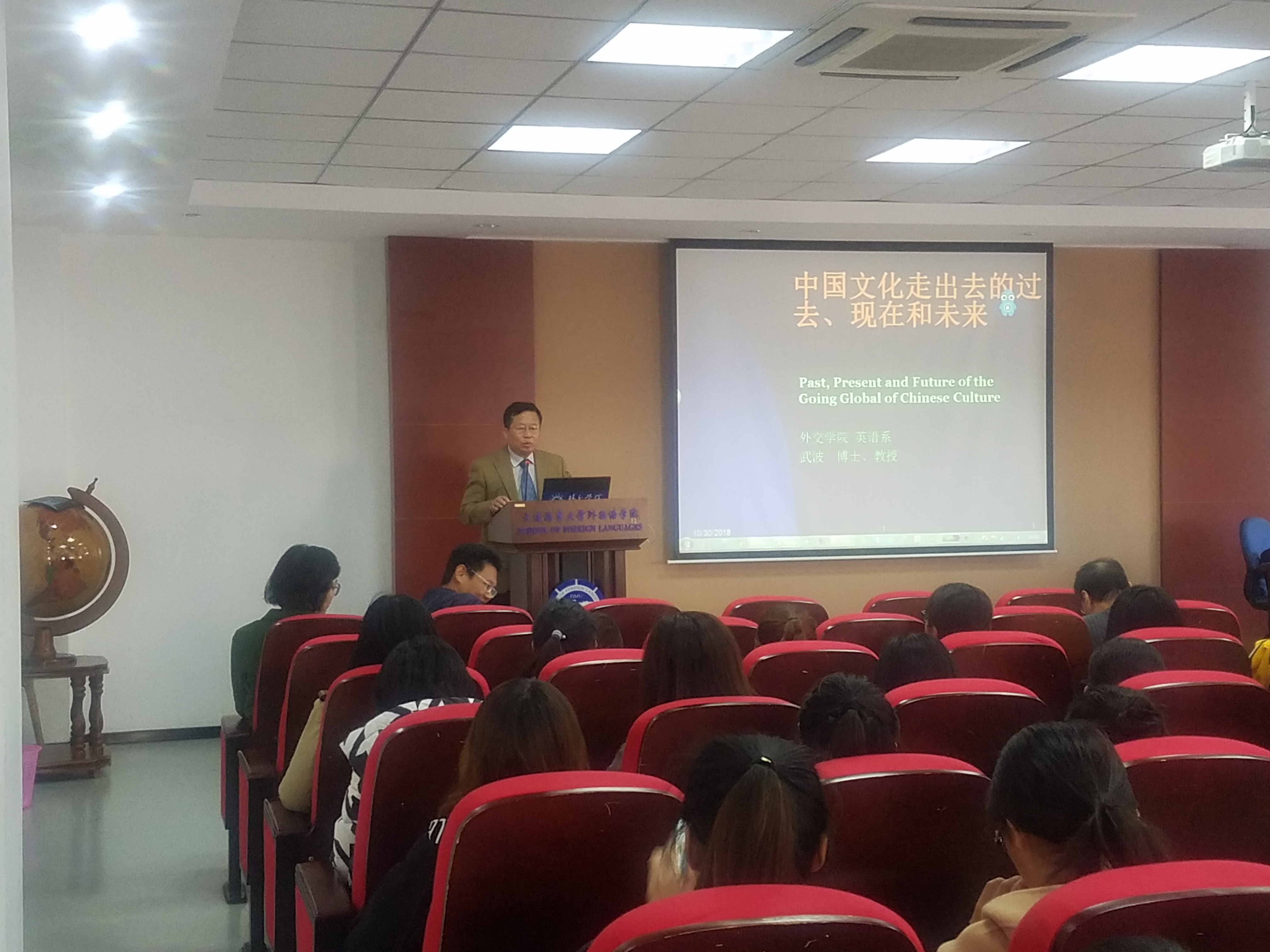 10月30日,人事处教师发展中心与外国语学院联合邀请首届国家教委“中英友好奖学金”获得者、外交学院英语系武波教授在外语楼105报告厅,为师生做了题为“中国文化走出去的过去、现在和未来”的报告。报告由外国语学院副院长曾罡主持。