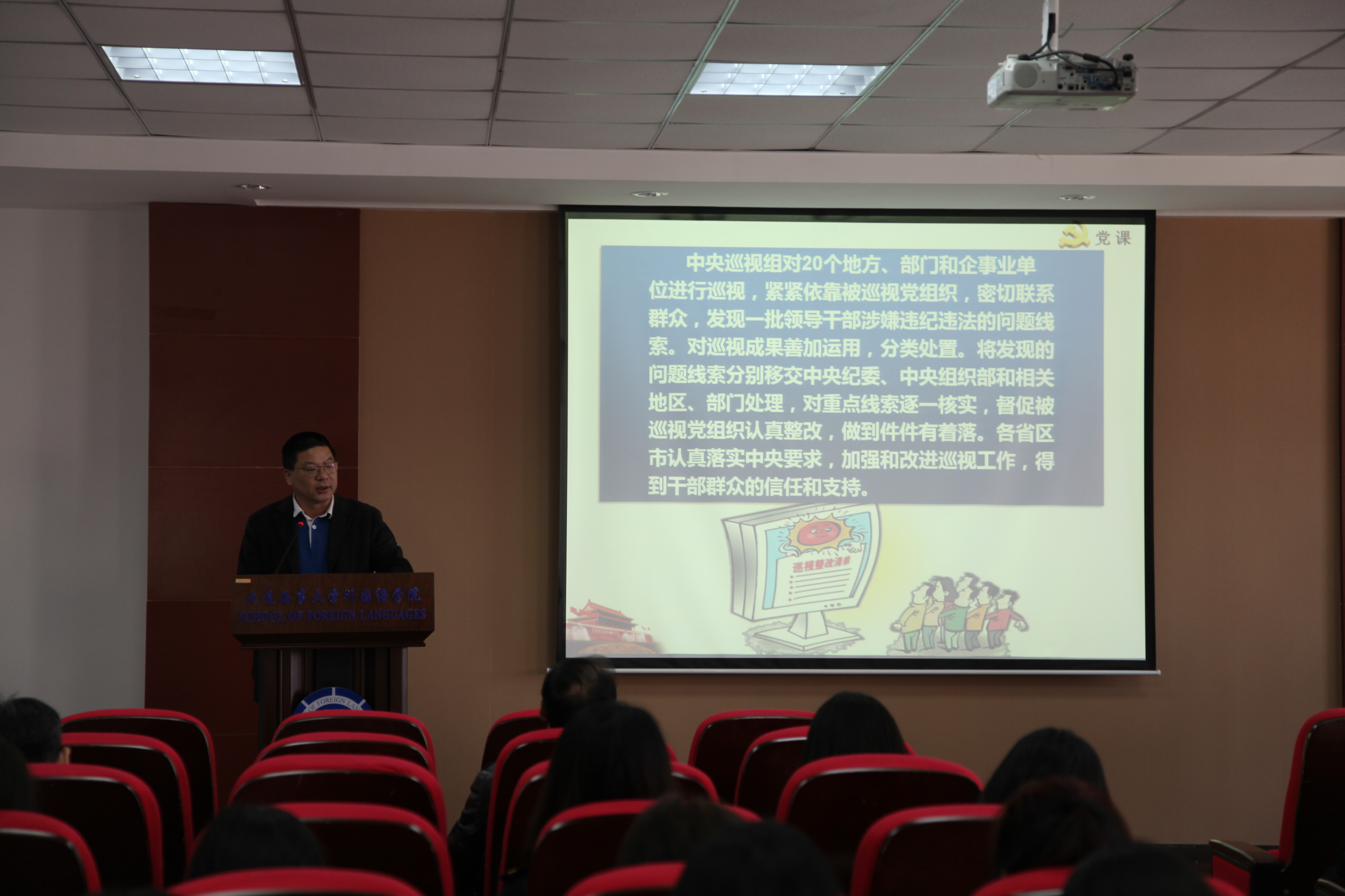 根据校党委关于基层党组织书记上党课的统一要求,4月10日,外国语学院党委书记徐斌为学院全体党员师生上了一节题为“关注两会热点,明确时代使命,着眼工作实际,强化党的建设”主题党课。