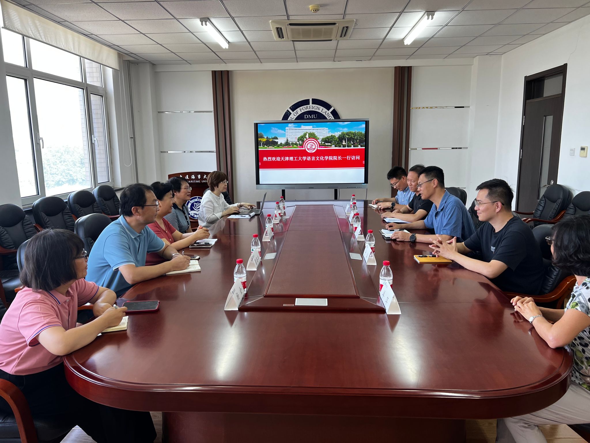 学院院长曾罡,副院长鹿学军,英语系主任于洋,日语系主任解礼业,以及公外副教授单萍等教师,热情接待了来访的代表团。双方在亲切友好的气氛中,进行了深入的交流与讨论。刘小荣院长表示,此次交流旨在借鉴大连海事大学外国语学院的优秀经验,进一步提升天津理工大学语言文学学院的教学质量。她期待双方能在今后的工作中,共同努力,实现更多的合作与进步。曾罡院长回应,欢迎天津理工大学语言文学学院的到访,他认为,双方都有自己的优势和特色,互相学习和交流,会为双方的发展带来更多的可能性。他希望这次交流会能进一步加深两校的友好关系,推动双方在教学和科研方面的深度合作。