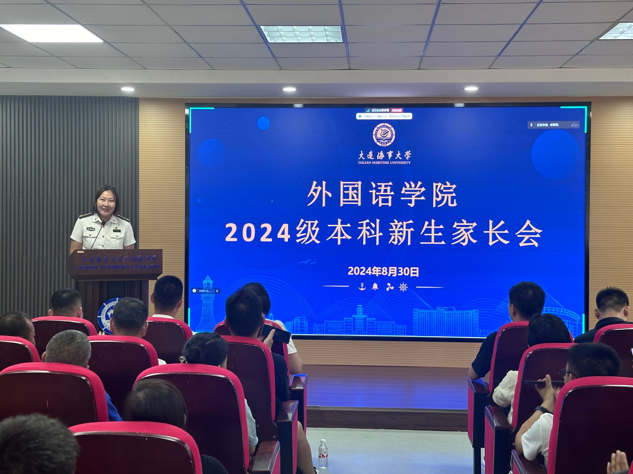 李雨珂从“听、说、读、写、辨”五个角度希望2024级新生家长积极承担相应的责任,与指导员老师保持密切联系,共同做好学生管理中最深入细致的工作,共同助力学生成长成才。