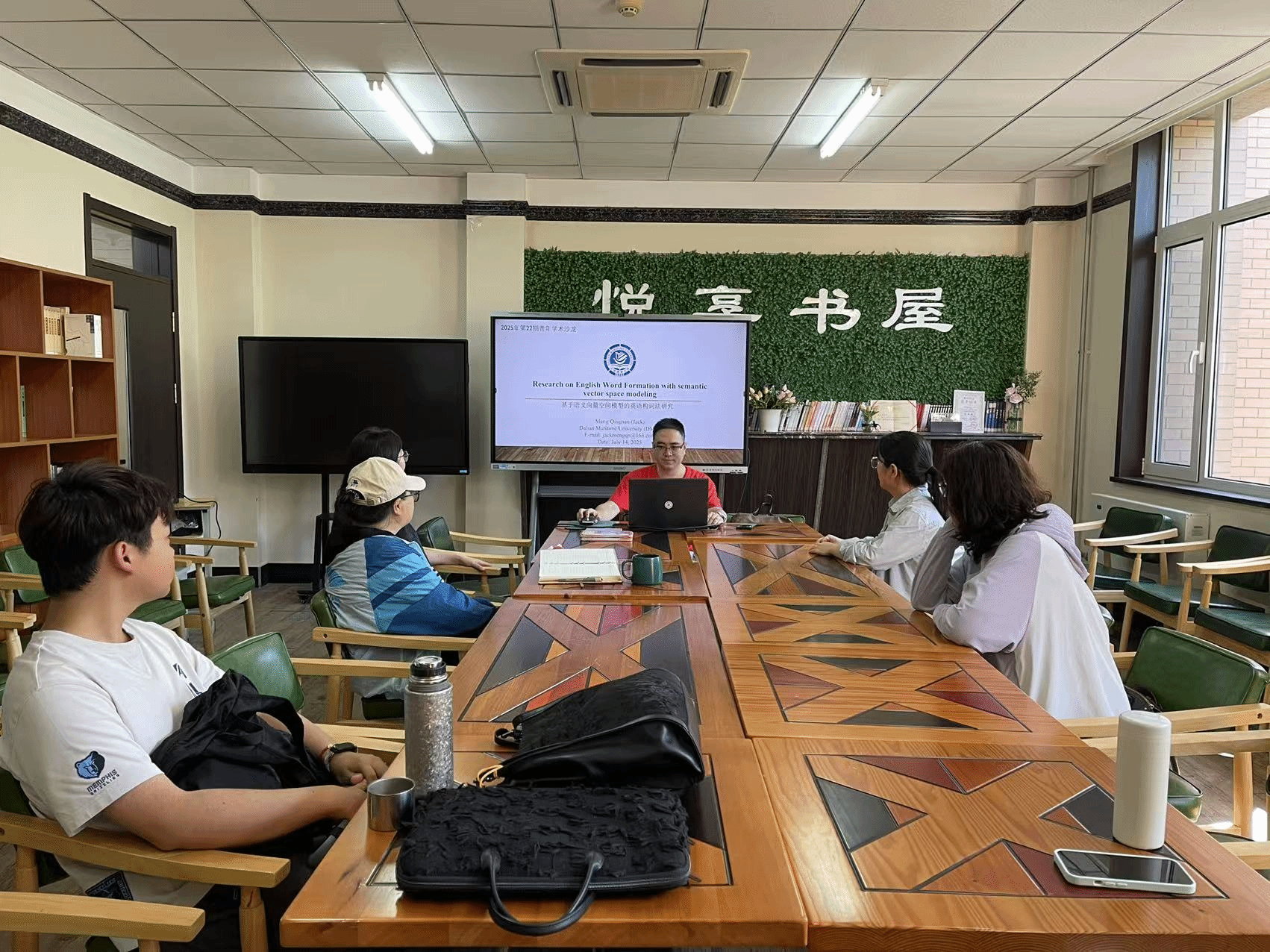 2025年7月14日下午15:30,第22期“海大青年学术沙龙”活动在外语楼四楼阅享书屋如期举行。本次沙龙活动由外国语学院英语系孟庆楠副教授主讲,讲座题目为“基于语义向量空间模型的英语构词法研究”。