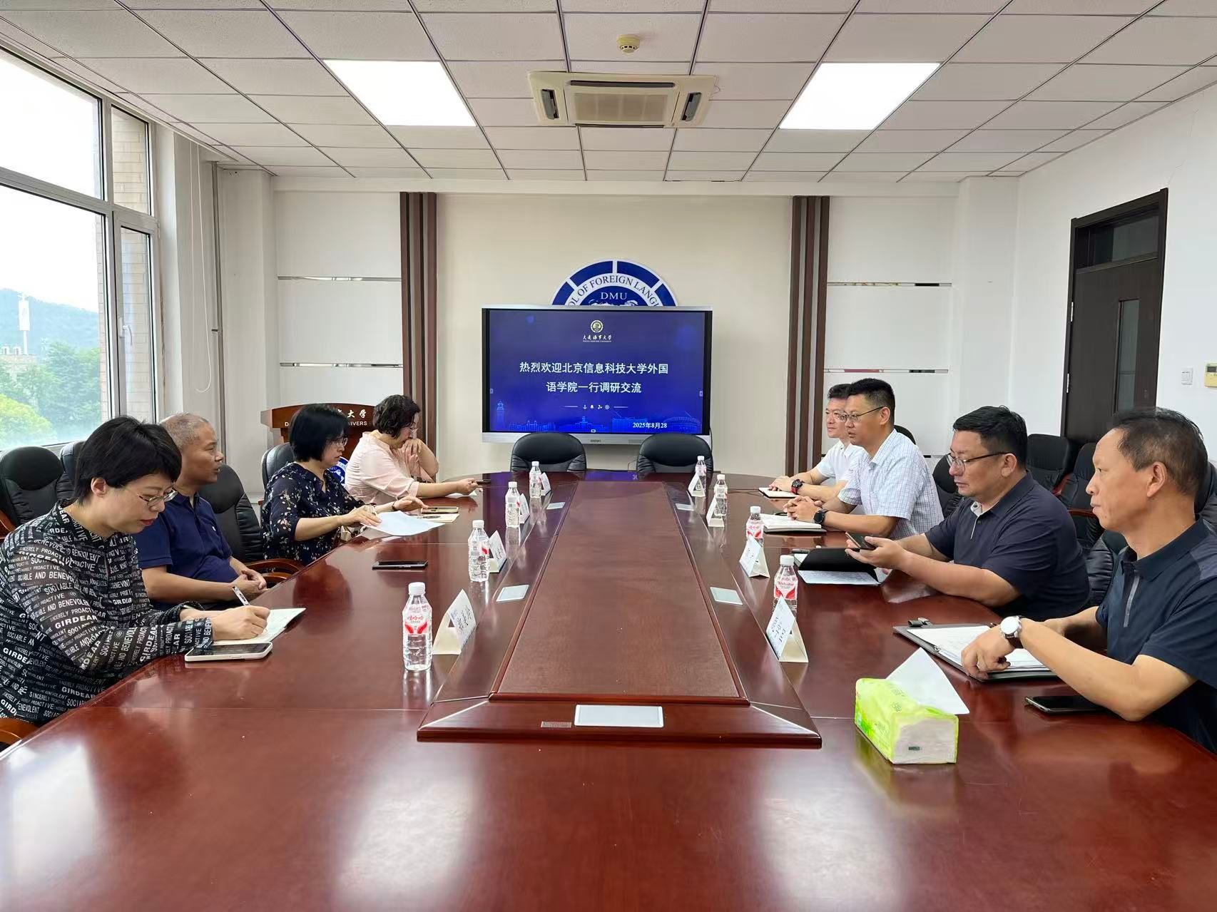 8月28日上午,北京信息科技大学外国语学院院长朱安博教授率团一行四人莅临我院进行考察调研。此次调研旨在围绕学科专业建设、硕士点申报、公共外语教学改革及教师职业发展等议题进行深入交流与经验分享。我院对此次来访高度重视,组织了专题座谈交流会。