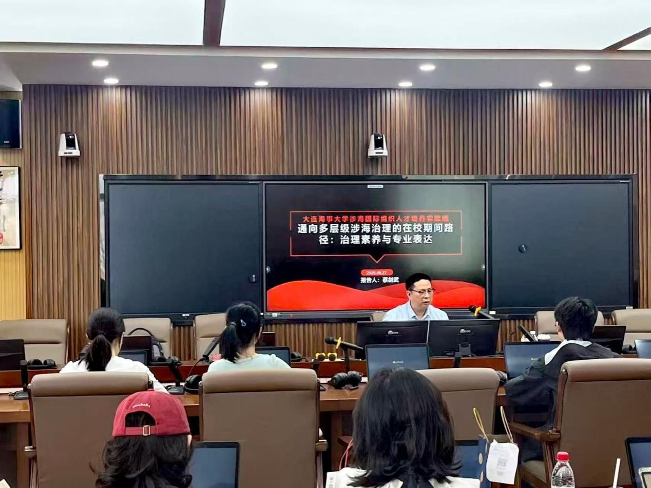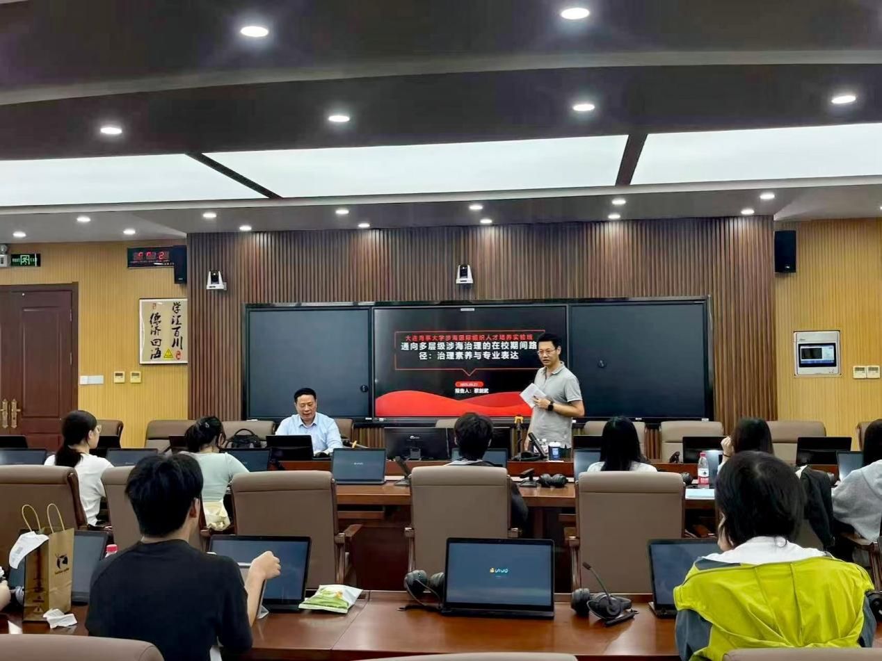2025年9月27日上午,大连海事大学外国语学院硕士专业学位研究生行业导师、厦门沃燊海事服务有限公司总经理蔡剑武应邀为我校涉海国际组织人才培养实验班及外国语学院学生进行题为“通向多层级涉海治理的在校期间路径:治理素养与专业表达”的授课。本次活动由外国语学院院长曾罡教授主持。