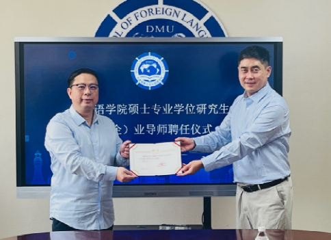 2025年9月28日上午,大连海事大学外国语学院为蔡剑武先生举行行业导师续聘仪式。续聘仪式由MTI中心主任李洋教授主持。外国语学院院长曾罡教授、MTI中心程昕教授及学院教师代表出席仪式。