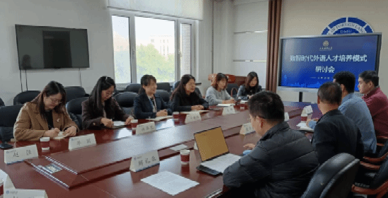 在交流环节,三方与会人员进行了热烈而深入的讨论。鹿学军副院长重点分享了我院依托学校航运背景推动专业转型的路径,以及在大学英语课程思政与教学模式上的探索。于洋主任补充介绍了专业核心课程的数字化建设成果与教学实践环节的改革思路。解礼业主任与大连工业大学日语系赵强主任就日语专业学生实践能力培养交换了看法。李洋主任则回应了来宾关切,分享了MTI学位点的建设心得与跨学科团队的构建经验。