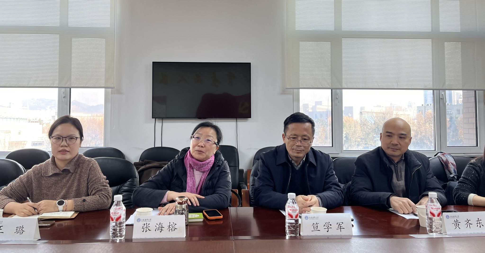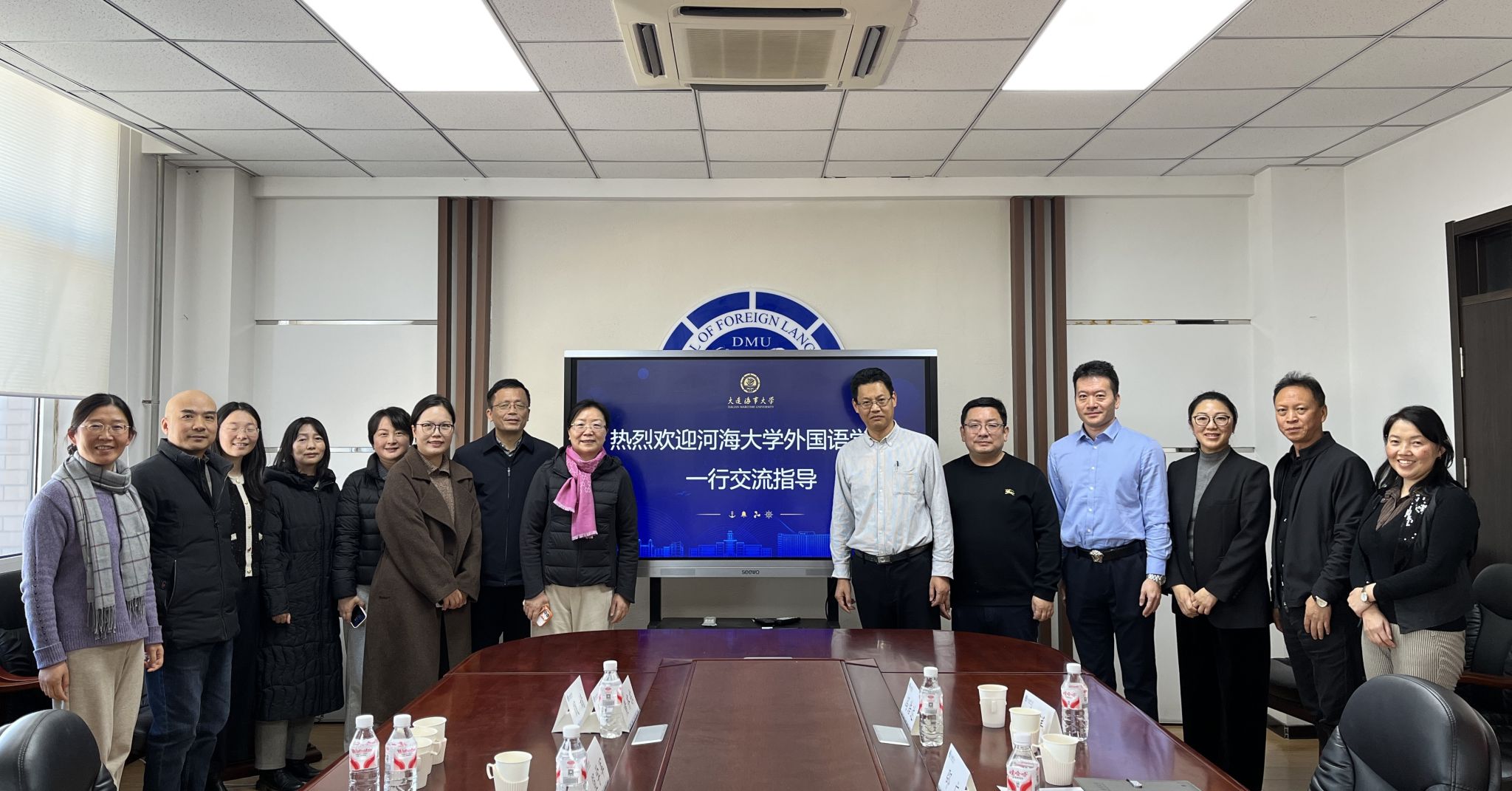 12月4日,河海大学外国语学院院长张海榕、党委书记笪学军、党委副书记副院长王璐等一行 8 人莅临大连海事大学外国语学院开展调研交流。我院长曾罡、党委书记邵广、副院长鹿学军、副院长冯浩达、党委副书记副院长纪委书记谭冰、MTI中心主任李洋、公共研究生英语教学部主任尚晓华等热情接待,双方围绕多项外语教育教学核心议题召开专题座谈会。