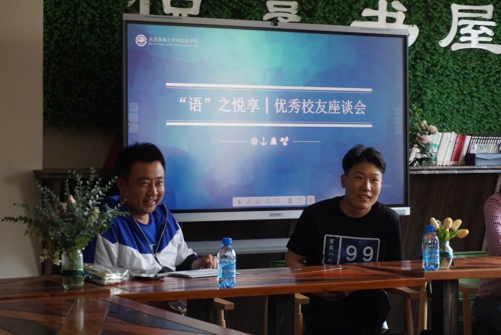 为纪念中国高等航海教育暨大连海事大学建校115周年,深入落实校友导师助力计划,推动在校师生与优秀校友交流常态化,5月18日下午,外国语学院举办“融通行业·引领未来”优秀校友座谈会,邀请位政信、赵玲慧两位校友助力导师分享自身求职、工作方面的经验。座谈会在悦享书屋举行,由兼职指导员薛天祎主持。