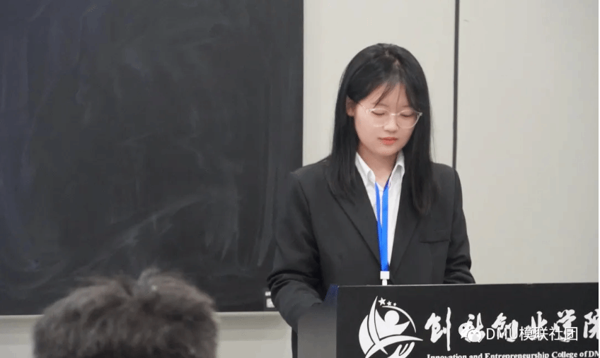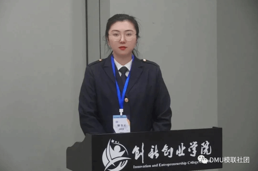 来自大连外国语大学的主新闻中心主席团指导杨茜雯女士发言,并指出了会场记者角色的重要性,表达了对代表表现的期许。