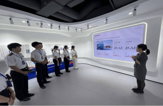 在介绍完成后,几位团队成员分享了自身专业和工作需求,并对于集团就业的具体事宜提出问题,在国贸股份人力资源部总经理助理潘倩倩的解答之后,团队成员随着经理前往集团的办公室参观工作环境并前往集团发展历程展示厅去了解集团的发展与未来。