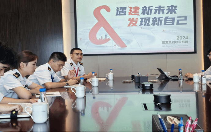 参观结束后,团队成员与人力资源部门叶子楠和大连海事大学2018级入职建发集团的优秀毕业生展开了座谈会。人力资源部叶子楠详细介绍了建发集团的人才培养模式和相关福利待遇以及关于校招的面试要求。优秀校友分享了自己的面试心得和工作体验,为团队成员和大连海事大学学弟学妹们提出了建议。团队成员从多方面向负责人提问,对建发集团的发展体系和前景有更深刻的认识。