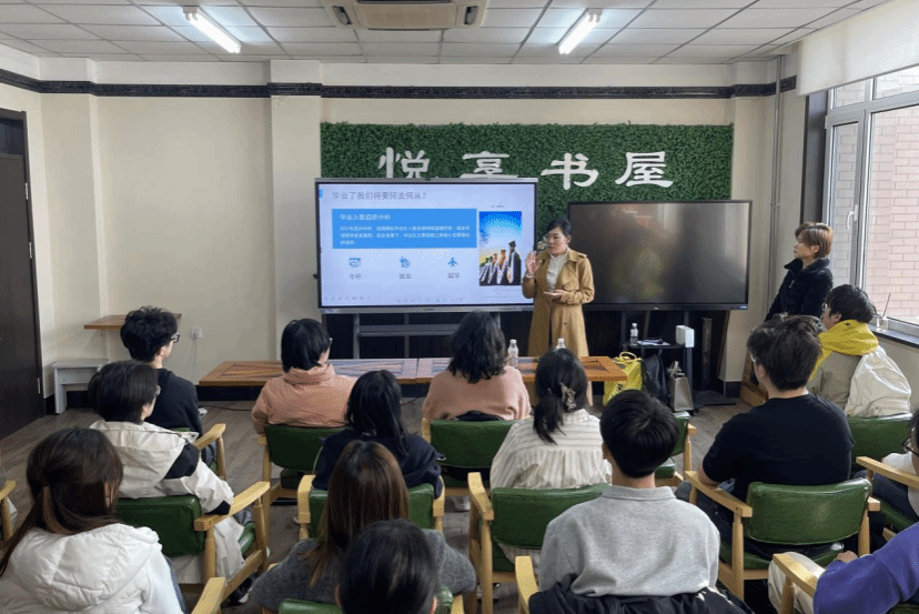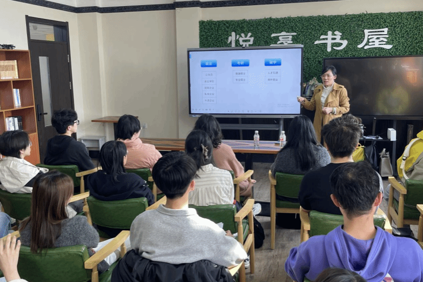 讲座围绕大学生普遍关注的“考研、留学、就业”三大方向,系统解读了普通硕士、专业硕士、人才引进、海外就业等不同发展路径的特点与要求。从个人条件、留学资金、留学目的、文化偏好等多个维度,为同学们分析了科学选择留学目标国家与院校的方法。在互动环节,同学们就留学国家选择、语言备考、跨专业申请等话题踊跃提问,现场气氛热烈。
