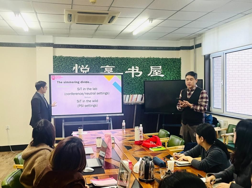 何博士在讲座中系统梳理视译(SiT)研究的发展脉络、现状与未来趋势。何博士从视译的定义与术语界定切入,深入剖析该领域中并行发展的两大研究范式,即认知范式与社会认知范式的优势与局限。认知范式以实验研究方法为核心,注重对视译员认知过程的控制与分析,多聚焦于会议口译或通用场景;社会认知范式则更强调生态效度,致力于模拟真实口译交际情境,深深植根于公共服务口译领域。长期以来,这两大研究方向缺乏有效对话与交叉融合。故此,何博士倡导从对立的研究领域中汲取养分,为全面理解口译作为交际活动的复杂本质提供新思路。
