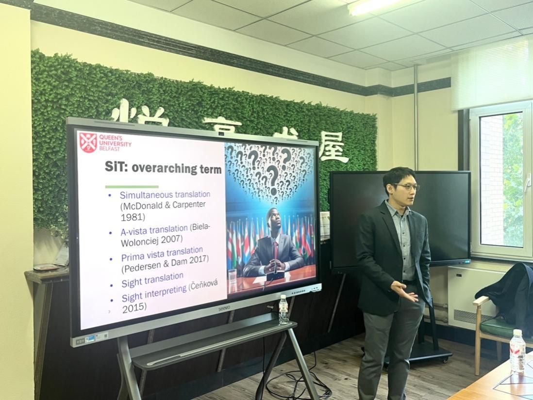 为推动翻译领域研究的交叉融合,深化对复杂视译现象的多维度理解,2025年10月22日上午,英国女王大学Chen-En Ho博士应邀来到我校开展2025年智库沙龙第14期(总第123期):“Bridging the Gap Between Research Silos: Moving from Cognitive to Socio-Cognitive Perspectives for the Intricate Nature of Sight Interpreting/Translation”学术讲座。讲座活动由大连海事大学外国语学院院长曾罡教授召集,由外国语学院MTI中心主任李洋教授主持。