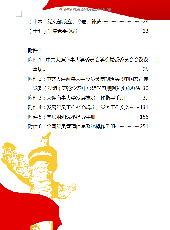 为贯彻落实党建工作规范化建设要求,帮助学院党委和各党支部明确工作任务和工作流程,认真做好各项党务工作,2020年5月,外国语学院党委编制完成了《外国语学院党委和党支部工作实务手册》,作为学院党务工作最全最实的工作指南。