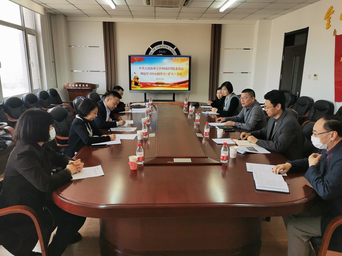3月29日,外国语学院召开2021年第一次理论学习中心组(扩大)会议,校党委党史学习教育第四指导组组长、副组长、成员,外国语学院党委委员参加会议。会议由学院党委书记徐斌主持。
