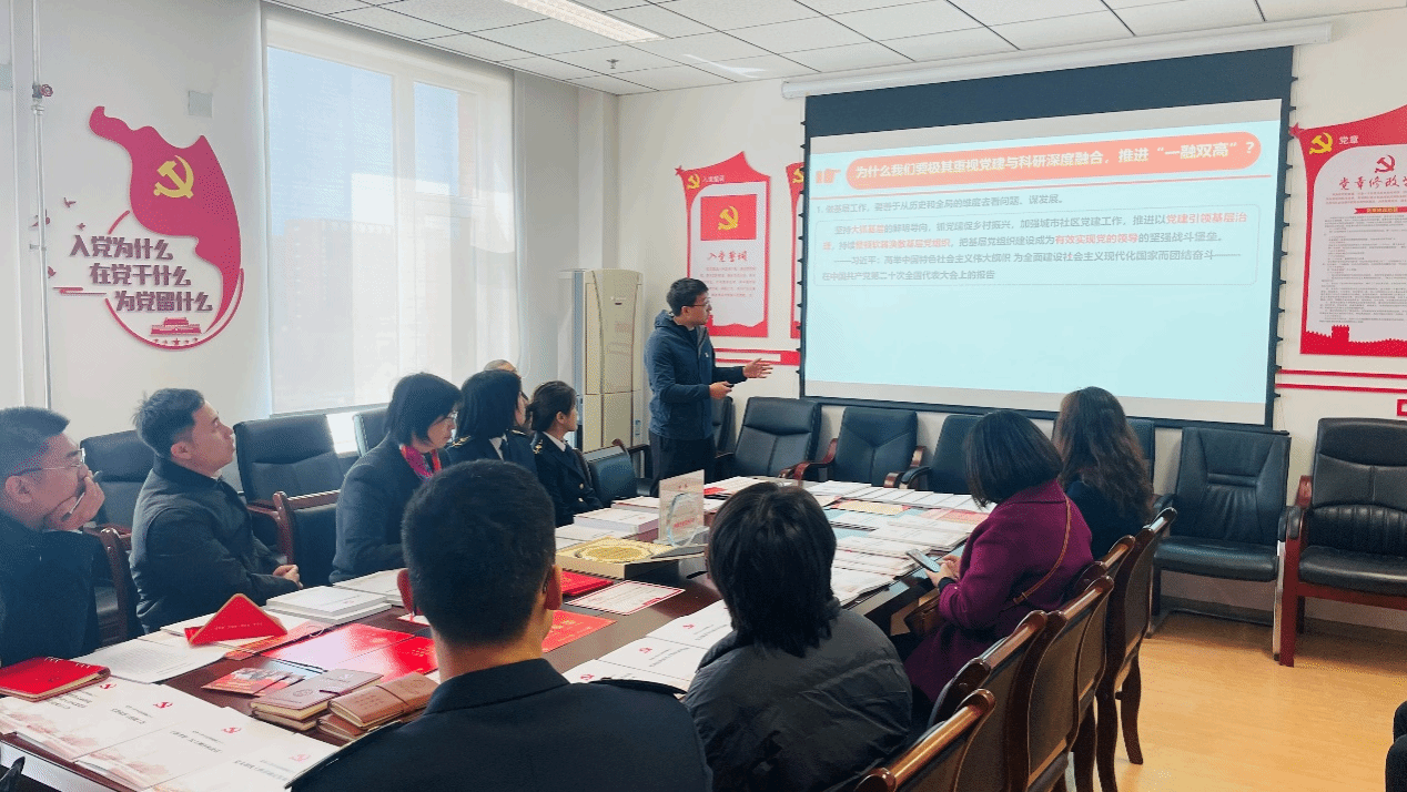 大连理工大学化工学院党委书记郭新闻对调研团一行表示欢迎,并对化工学院“标杆院系”建设工作、建设成效等方面进行了简要介绍。化工学院党委组织员赵佳明从近些年的主要荣誉和成就以及创建“全国党建工作标杆院系”培育创建的“五个始终坚持”优良传统、 “党委-立标杆”“支部-树样板”“党员-做先锋”“事业-促发展”的“四维一体”党建引领育人体系和推进“党建+业务”深度融合的“五同五进”工作法、聚焦“五个到位”,聚力“一融双高”,着力实现“党员一面旗、支部一团火,党委一盘棋、全院一股劲”的建设总体目标等方面进行了详细介绍。学生党支部书记李德康介绍了理工科博硕学生党支部“一融双高”建设的思考与实践。