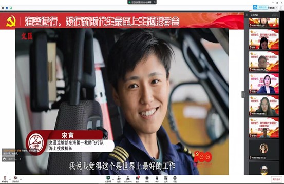 活动伊始,与会人员集中观看了央视新闻专题宣传片《奋斗故事 最帅女机长宋寅》,通过视频,大家见证了宋寅同志由飞行员逐步成长为教员机长的执着和不懈,看到了她面对险情时的专业和从容,对待每一次出海救援任务的谨慎和无畏,切身感受到救援任务的惊心动魄以及救援成功后的感动欣喜,更明白了海上救援的不易。