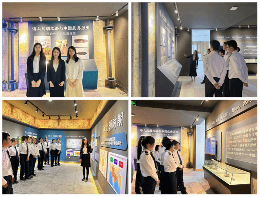 师生以时间为主线,从原始先民的航海探索开始,依次参观了我国各个时期航海历史上的重大事件,共同见证海上丝绸之路由初启到鼎盛的历程,惊叹于古人在航海技术上的一次次突破,也了解了我国航运事业的发展历程。