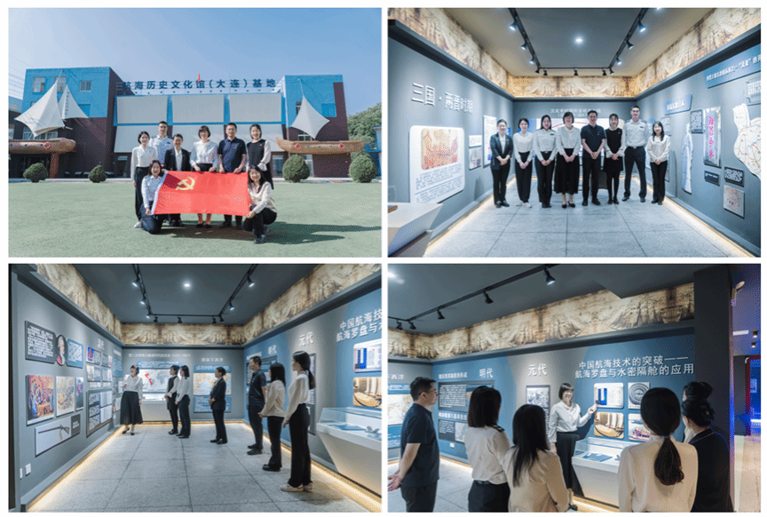 为深入开展学习贯彻习近平新时代中国特色社会主义思想主题教育,落实国家“交通强国”“海洋强国”战略,增强师生海洋意识和国土意识,5月22日下午,外国语学院党委赴航海历史文化馆(大连)基地开展“述往思来铭记航海历史 实干担当筑梦交通强国”主题活动,与航海历史文化馆(大连)基地举行爱国主义教育基地揭牌仪式并开展“课程思政”校外实践课堂。学院党委书记吕海宁、全体党支部书记、师生党员代表参加学习。