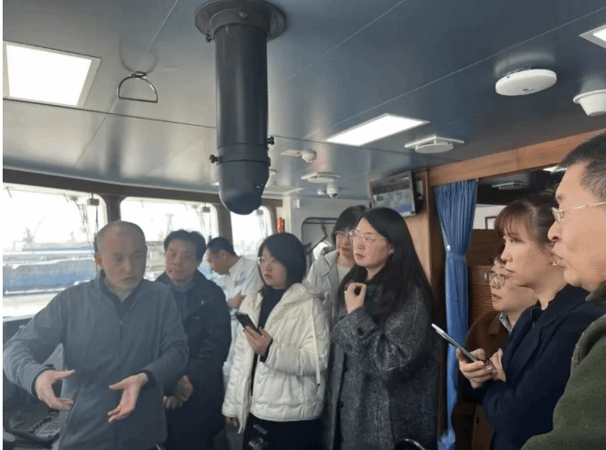 在机舱,孟维明大管向老师们介绍了3台1520 KW的发电机组、全电力吊舱推进器、减摇鳍、分油机、污水处理装置等设备。他特意强调,配电板间的电站管理系统实现了全船用电设备的智能化管理,让“绿色、清洁、动力充沛”的设计理念走向现实。在船舶甲板,吕海宁带领大家系统学习了习近平总书记围绕建设交通强国、海洋强国发表的一系列重要讲话精神。她希望全体教师以本次主题党日为契机,将习近平总书记的交通强国、海洋强国指导思想转化为行动,积极投身教学科研事业,为培养智能航运人才贡献外院力量。老师们纷纷表示深受震撼,我国智能航海领域“从无到有、从有到强”的发展,凝聚了无数航海人不服输的志气和不怕苦的勇气。站在“新红专”轮的岸边,大家纷纷拍照留念,感叹此行收获颇丰。